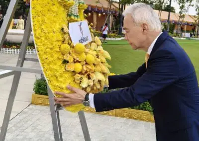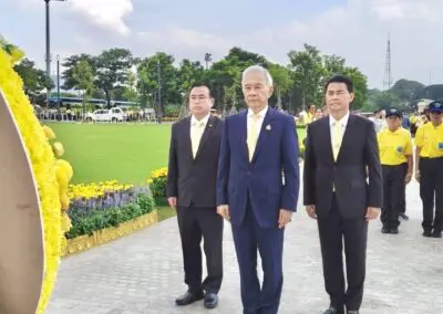 ทั้งนี้ มีตัวแทนพรรคการเมืองต่างๆ หน่วยงานภาครัฐ เหล่าทัพ ภาคเอกชน ประชาชน นักเรียน นิสิต นักศึกษา องค์กรต่างๆ ร่วมถวายพวงมาลา เพื่อน้อมสำนึกในพระมหากรุณาธิคุณ