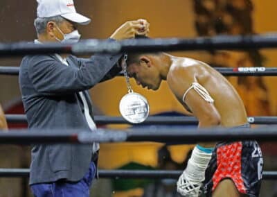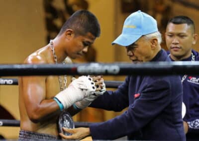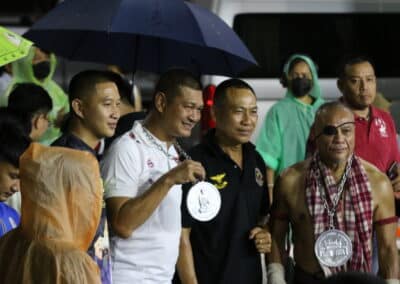 “วันนี้ พิเศษท่านนายกเทศมนตรีฯ กับท่านปลัด และผอ. โรงเรียนกีฬา ได้ให้เด็กเยาวชนที่เป็นลูกหลานเรา 8 คน กลับไปฝึกกับ “น้องวิว” เยาวภา บุรพลชัย ซึ่งเป็นผู้จัดการโรงเรียนที่สอนเรื่อง MMA อยู่ที่เลเจนด์ อารีน่า หัวหิน มีเวทีมวย มีเวที MMA วันนี้เราจะเอาลูกหลานของคนโคราชมาฝึกให้เป็นนักมวย MMA ของโลก โดยน้องวิว จะพาเด็ก 8 คน ไปเข้าคอร์ส ฝึกอบรมมวยไทย มวย MMA เพื่อต่อยอด ต่อยอดมวยไทยของเรา ให้เป็นแชมป์ MMA ของโลก อันนี้คือ ความยิ่งใหญ่ ต้องขอขอบคุณน้องวิว เลเจนด์ อารีน่า สําคัญที่สุด ผมบอกว่าโคราชเป็นเมืองมวย และเมื่อสักครู่มวยที่ต่อยคู่แรก ได้รับรางวัลเหรียญหลวงพ่อคูณใหญ่ที่สุด เป็นรางวัล เห็นแล้วตื่นเต้นกันมาก แล้วทําไมต้องเป็นเหรียญหลวงพ่อคูณ ก็เพราะว่าเราอยู่โคราช เรากราบอนุสาวรีย์ย่าโม เราก็กราบหลวงพ่อคูณ”นายสุวัจน์ กล่าวและเล่าว่า