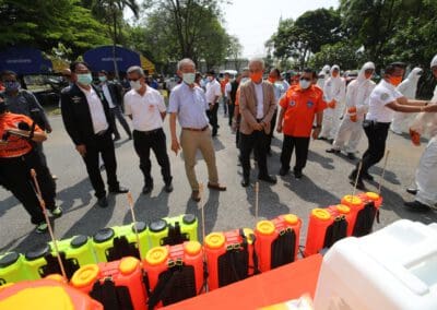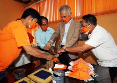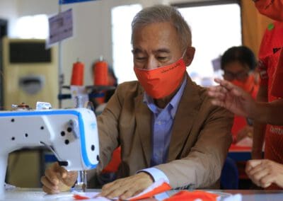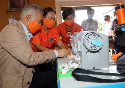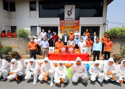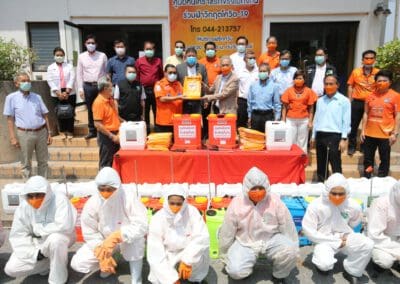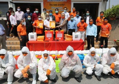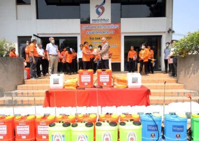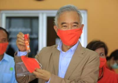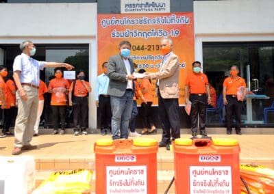 ซึ่งมีการปรับพื้นที่ภายในอาคารสำนักงานพรรคฯ เป็นที่ทำการของ“ศูนย์คนโคราชรักจริงไม่ทิ้งกัน ร่วมใจฝ่าวิกฤติโควิด-19” โดยปรับพื้นที่เป็นโรงงานผลิตหน้ากากอนามัยผ้า , ผลิตเจลล้างมือ และสเปรย์ฆ่าเชื้อแจกประชาชนในพื้นที่ นอกจากนี้ ยังแบ่งพื้นที่ทำเป็นโรงพ่นฆ่าเชื้อโรคในรถยนต์ เพื่อบริการให้กับประชาชนทั่วไปฟรี ซึ่งได้รับความร่วมมืออย่างดีจากสถาบันการศึกษา ผู้ประกอบการ ผู้นำชุมชน และประชาชนที่มีจิตอาสา เข้ามาช่วยกันผลิตและทำงานร่วมกันไปจนกว่าสถานการณ์การแพร่ระบาดของเชื้อไวรัสโควิด-19 จะคลี่คลาย โดยแต่ละวันทางศูนย์ฯ สามารถผลิตหน้ากากอนามัยผ้าได้เฉลี่ยวันละประมาณ 1,000 ชิ้น และผลิตเจลล้างมือหรือสเปรย์ฆ่าเชื้อได้ 1,000 ชุด สำหรับนำไปมอบให้กับผู้นำชุมชน และส่วนราชการต่างๆ เพื่อนำไปแจกจ่ายให้กับประชาชนในพื้นที่ทั้ง 32 อำเภอของจังหวัดนครราชสีมา