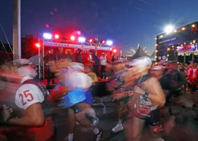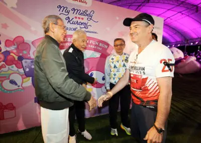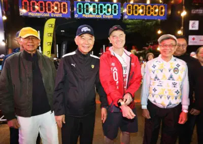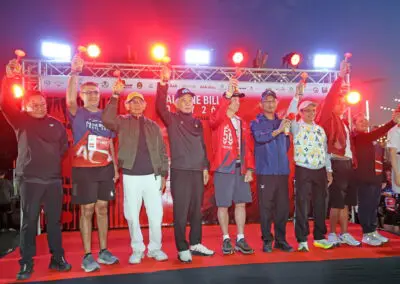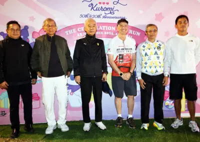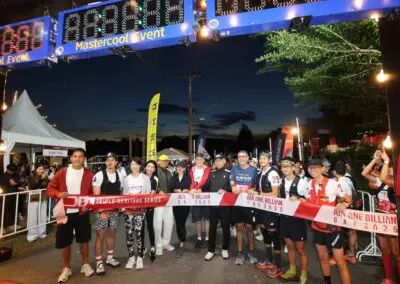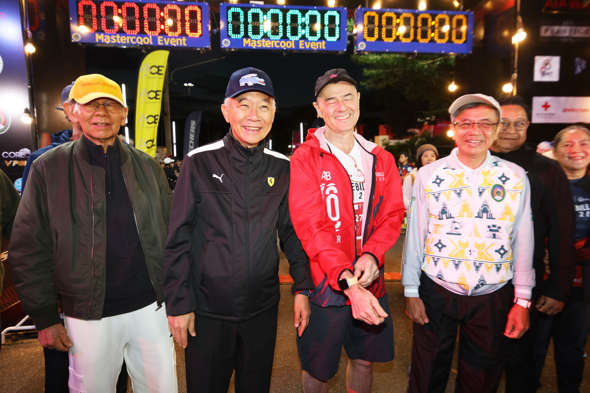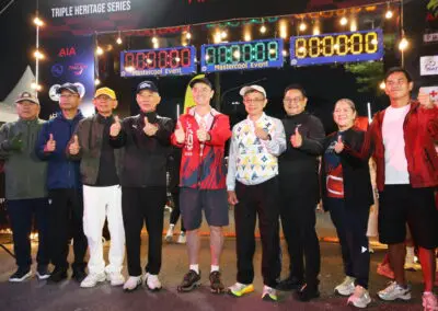 รองศาสตราจารย์ ดร.อดิศร เนาวนนท์ อธิการบดีมหาวิทยาลัยราชภัฏนครราชสีมา นายแพทย์วรรณรัตน์ ชาญนุกูล นายกเทศมนตรีนครนครราชสีมา นายไพวงษ์ เตชะณรงค์ นายสงกรานต์ เตชะณรงค์ เจ้าโบนันซ่า การท่องเที่ยว บริษัทพราวกรุ๊ป พร้อมนักวิ่งจำนวนมาก
