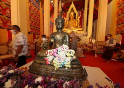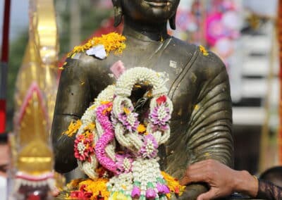 โดยอัญเชิญพระคันธารราฐ หรือ พระปางขอฝน พระพุทธรูปสำคัญซึ่งประดิษฐานที่วิหารหลวงวัดพระนารายณ์มหาราช วรวิหาร แห่ผ่านเมืองไปยังลานอนุสาวรีย์ท้าวสุรนารี ถนนราชดำเนิน ต.ในเมือง อ.เมืองนครราชสีมา และประดิษฐานชั่วคราว ที่บริเวณหน้าลานอนุสาวรีย์ท้าวสุรนารี ให้ประชาชนและนักท่องเที่ยวได้ร่วมสืบสานประเพณีอันดีงามให้กลับคืนมาเจริญรุ่งเรือง และได้กราบสักการะ-สรงน้ำขอพร ในช่วงการจัดงานประเพณีสงกรานต์ย้อนยุคของจังหวัดฯ หลังจากนั้น จึงจะทำพิธีแห่พระลอดซุ้มประตูชุมพล ซึ่งเป็นประตูเข้าสู่เมืองนครราชสีมา กลับไปยังวิหารหลวงที่วัดพระนารายณ์มหาราชวรวิหารตามเดิม