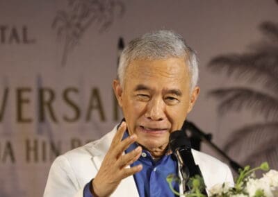 15 ปี ตนรู้สึกว่าได้เป็นส่วนหนึ่งร่วมกับผู้พัฒนาทั้งหลายในการสร้างเมืองหัวหิน ให้เป็นที่ยอมรับ เราก็เหมือนกับเป็นเครื่องประดับอัญมณีชิ้นหนึ่ง ร่วมกับหลายชิ้นที่เป็นอาภรณ์ ช่วยกันตกแต่งให้หัวหินเป็นเมืองต่างอากาศระดับสูงต่อไป ฉะนั้น ต้องขอขอบพระคุณทุกท่านที่ได้มาร่วมงานในวันนี้ แล้วก็มีส่วนสําคัญในการดําเนินการทุกอย่างที่ทําให้โรงแรมประสบความสําเร็จ และโรงแรมก็คงจะต้องก้าวหน้าต่อไป มีอายุต่อไป 50 ปี 100 ปี คู่กับเมืองหัวหินและต้องมีการพัฒนาปรับปรุงอะไรยิ่งขึ้นไป“นายสุวัจน์ กล่าว