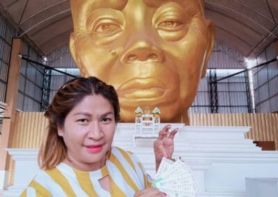 เมื่อวันที่ 16 มีนาคม 2566 นางสาวนันธวรรณ สุมนนอก หรือคุณทราย วัย 30 ปี เจ้าหน้าที่ประชาสัมพันธ์โครงการหลวงพ่อคูณองค์ใหญ่ กล่าวว่า ได้โชคจากหลวงพ่อติดต่อกันมา 6 งวดแล้ว เมื่อเช้าเอาไข่ไก่มาถวาย 2 พันฟอง จุดธูปขอพร ขอโชคจากหลวงพ่อวันนี้หวยออกขอให้มีโชค ปรากฎว่าเลขที่ธูปขึ้น 73 เลยเอาไปเสี่ยงโชคโชคดีถูกรางวัลลอตเตอรี่ เป็นงวดที่ 7