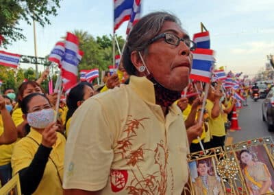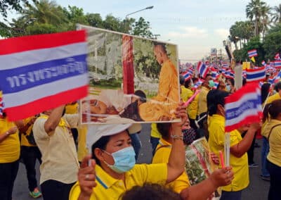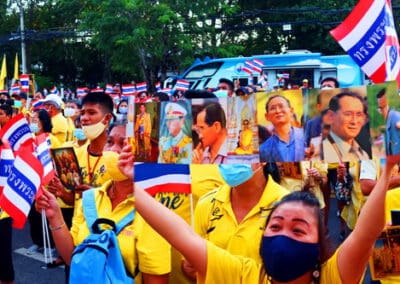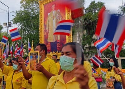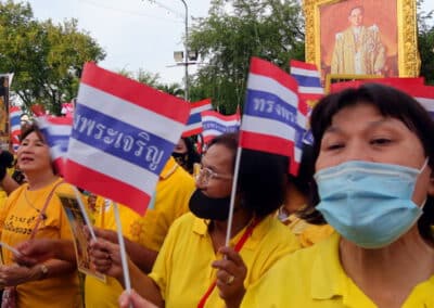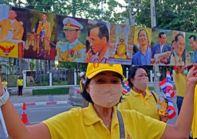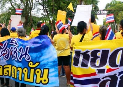 เมื่อเวลา 17.30 น. วันที่ 23 ต.ค. 2563 คนหัวหิน และปรานบุรี กว่าหนึ่งพันคน รวมตัวสวมเสื้อเหลือง จำนวนประมาณ หนึ่งพันคน ร่วมตัวชุมนุม ประกาศเรียกร้องขออย่าทำร้ายสถาบันพระมหากษัตริย์ พร้อมร้องเพลงสรรเสริญพระบารมี และเพลงปลุกใจให้รักชาติ บริเวณหน้าวังไกลกังวล อ.หัวหิน จ.ประจวบคีรีขันธ์ โดยการชุมชุมเรียกร้องดังกล่าว ชาวบ้านได้ชูธงชาติ โบกธงชาติ พร้อมชูพระบรมฉายาลักษณ์ ในหลวง และพระราชินี โดยเปิดการจราจร เพียงหนึ่งช่องทาง และจะพร้อมรวมตัวกัน อีกหากยังมีการทำร้ายสถาบันกัน โดยไม่เกรงกฏหมาย วอนขอให้ประเทศจงมีความรักและสามัคคี