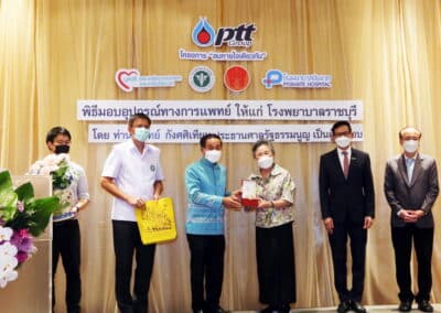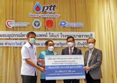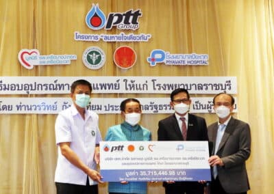 วันที่ 6 กรกฎาคม 2565 เวลา 14.00 น.นายอรรถพล ฤกษ์พิบูลย์ ประธานเจ้าหน้าที่บริหารและกรรมการผู้จัดการใหญ่ บริษัทปตท.จำกัด(มหาชน) นายแพทย์วิทิต อรรถเวชกุล กรรมการผู้จัดการ โรงพยาบาลเครือปิยะเวท เป็นประธานพิธีมอบอุปกรณ์ทางการแพทย์ในโครงการ”ลมหายใจเดียวกัน” ให้แก่โรงพยาบาลราชบุรี มูลค่า 35,715,446.98 บาท จำนวน 36 ห้อง รับมอบโดยนายวรวิทย์ กังศศิเทียม ประธานศาลรัฐธรรมมนูญ และนายแพทย์นิคม มะลิทอง รองผู้อำนวยการโรงพยาบาลราชบุรี