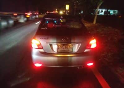 จากการสอบถามนายบดินทร์ คู่กรณี เล่าว่า ตนได้เดินทางจากกรุงเทพฯ เพื่อจะไปรับลูกชายที่จังหวัดอุดรราชธานีมาเรียนพิเศษที่กรุงเทพฯ ในระหว่างที่เดินทางนั้นนางนริสรา ผู้บาดเจ็บ ได้ขับขี่รถจักรยานยนต์ปาดเข้ามาเลนของตัวเอง จึงทำให้หักหลบไม่ทันเนื่องจากเหตุการณ์กระชั้นชิดอีกทั้งบริเวณดังกล่าวก็ค่อนข้างมืดจึงไม่ทันระวังว่าจะมีใครขับรถปาดหน้า แต่ในระหว่างที่เกิดเหตุนั้นโชคดีที่รถบรรทุกขับมาตามหลังไม่ชนซ้ำเข้าไปอีก ไม่งั้นคงเกิดเหตุซ้ำซ้อนขึ้นมาอย่างแน่นอน จึงขอฝากให้หน่วยงานช่วยดูแลไฟส่องสว่างบริเวณถนนเพื่อป้องกันการเกิดเหตุซ้ำอีก.