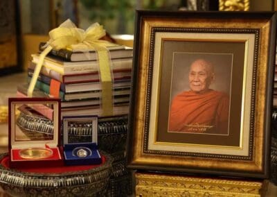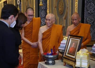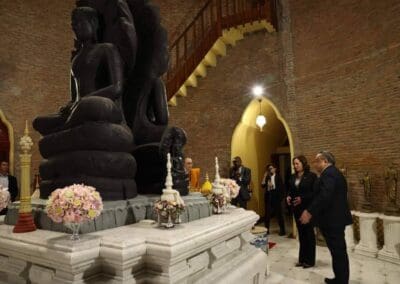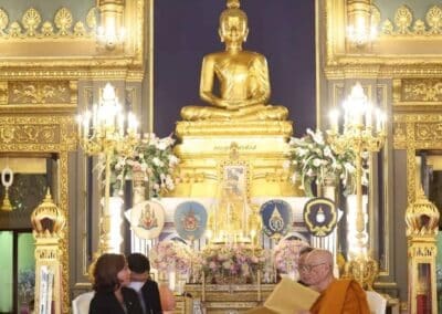 พระอุโบสถที่เราทั้งหลายนั่งอยู่นี้ มีพระพุทธปฏิมาประธานทรงพระนามว่า ‘พระพุทธอังคีรส’ ประดิษฐานเป็นสัญลักษณ์เตือนใจให้ระลึกถึงมหาบุรุษ ผู้ทรงแสวงหา ค้นพบ และประกาศหนทางให้มนุษยชาติ ปราศจากภัยแห่งความวิวาทบาดหมางและเบียดเบียนกัน ทรงประกาศธรรมะอันบริสุทธิ์ เพื่อสรรค์สร้าง ‘อิสรภาพ’ สำหรับสรรพชีวิต ให้สามารถปลดเปลื้องความทุกข์ทรมานในจิตใจตน ยังผลให้สรรพสัตว์ทั้งหลายได้ยินดีใน ‘เสรีภาพ’ แห่งกุศลธรรม นำไปสู่ ‘สันติภาพ’ ซึ่งเป็นจุดมุ่งหมายร่วมกัน