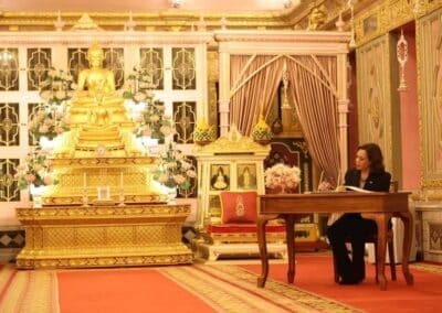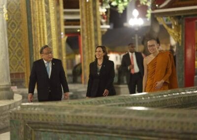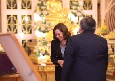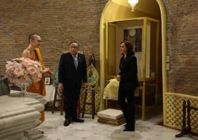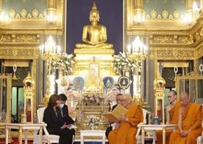 วันเสาร์ ที่ ๑๙ พฤศจิกายน ๒๕๖๕ เจ้าพระคุณ สมเด็จพระอริยวงศาคตญาณ สมเด็จพระสังฆราช สกลมหาสังฆปริณายก เสด็จลงพระอุโบสถ วัดราชบพิธสถิตมหาสีมาราม ประทานพระวโรกาสให้ นางกมลา ดี. แฮร์ริส รองประธานาธิบดีสหรัฐอเมริกา เฝ้าถวายสักการะและประทานพระอนุญาตให้เข้าชมศิลปกรรมวัดราชบพิธสถิตมหาสีมาราม ในโอกาสเดินทางเยือนประเทศไทยอย่างเป็นทางการเพื่อเข้าร่วมการประชุมความร่วมมือทางเศรษฐกิจเอเชีย-แปซิฟิก เอเปค ๒๐๒๒