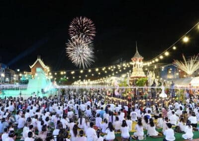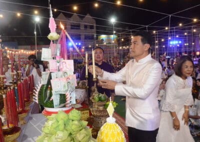 สำหรับกิจกรรมสวดมนต์ข้ามปีแต่ละวัดนั้นมีผู้บริหารระดับสูงของจังหวัดไปร่วมในพิธี อาทิ วัดสุทธจินดา วรวิหาร มีนายสยาม ศิริมงคล เป็นประธานฝ่ายฆราวาส, วัดบึง พระอารามหลวง มีนายสมเกียรติ วิริยะกุลนันนท์ เป็นประธานฝ่ายฆราวาส เป็นต้น