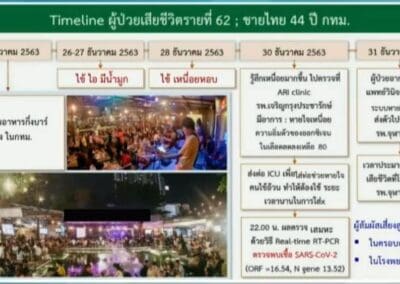 รายแรกเป็นชายอายุ 44 ไปร้านอาหารกึ่งบาร์แห่งหนึ่งในกทม. มีความเสี่ยงเป็นโรคอ้วน ทำให้มีความจำเป็นต้องใส่ท่อช่วยหายใจในวันที่ 30 ธ.ค.63 และเสียชีวิตที่รพ.จุฬาลงกรณ์เวลาประมาณ 15.00 น.วันที่ 31 ธ.ค.63