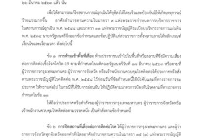 2.ปิดสถานที่เสี่ยงต่อการติดต่อโรค ให้ผู้ว่าฯ กทม. และผู้ว่าราชการจังหวัดทุกจังหวัดออกคำสั่งโดยอาศัยอำนาจตามความในมาตรา 35 (1) พ.ร.บ.โรคติดต่อ พ.ศ. 2558 พิจารณาสั่งปิดสถานที่ที่มีคนจำนวนมากไปทำกิจกรรมร่วมกันและเสี่ยงต่อการแพร่เชื้อเป็นการชั่วคราว โดยต้องสั่งปิดสถานที่ดังต่อไปนี้
