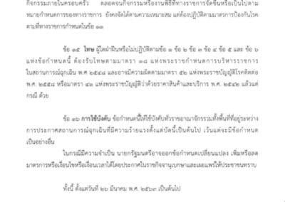 15 โทษความผิด ผู้ฝ่าผืนหรือไม่ปฏิบัติตามข้อ 1 – 6 แห่งข้อกำหนดนี้ ต้องรับโทษตามมาตรา 18 พระราชกำหนดการบริหารราชการในสถานการณ์ฉุกเฉิน พ.ศ. 2548 และอาจมีความผิดตามมาตรา 52 พ.ร.บ.โรคติดต่อ พ.ศ. 2548 หรือมาตรา 41 พ.ร.บ.ว่าด้วยราคาสินค้าและบริการ พ.ศ. 2542 แล้วแต่กรณี
