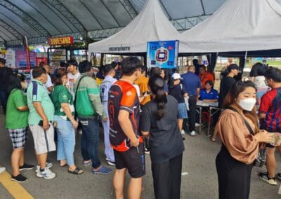 นครราชสีมา – วันนี้ (6 กันยายน 2566) เวลา 11.00 น. ที่บริเวณจุดจำหน่ายตั๋ว หน้าอาคารยิมเนเซียมชาติชายฮอลล์ ภายในสนามกีฬาเฉลิมพระเกียรติ 80 พรรษา อ.เมือง จ.นครราชสีมา ได้มีประชาชนจากทั่วประเทศ เดินทางมาต่อคิวเพื่อซื้อตั๋วเข้าชมการแข่งขันวอลเลย์บอลหญิง ชิงแชมป์เอเชีย 2023 นัดชิงชนะเลิศกันอย่างคึกคัก โดยนัดชิงชนะเลิศ จะเป็นการพบกันระหว่างทีมชาติไทย พบกับ ทีมชาติจีน ซึ่งจะทำการแข่งขันในช่วงเวลา 18.00 น. ภายในอาคารยิมเนเซียมชาติชายฮอลล์ สนามกีฬาเฉลิมพระเกียรติ 80 พรรษา อ.เมือง จ.นครราชสีมา โดยบรรยากาศเป็นไปอย่างคึกคัก แฟนวอลเลย์บอลหลายคนเดินทางมาตั้งแต่เช้า บางคนก็เดินทางมาจากต่างจังหวัดตั้งแต่ 2 วันที่แล้ว เพื่อมารอซื้อบัตรเข้าชมนัดชิงชนะเลิศ เพราะกลัวว่าบัตรจะจำหน่ายหมดก่อน ถึงอย่างไรก็ตาม ช่วงก่อนเที่ยงปรากฏว่าบัตรโซน F และโซน H ราคา 300-500 บาท ใกล้จะหมดแล้ว ทำให้หลายคนที่ซื้อบัตรได้ทันต่างก็รู้สึกดีใจเป็นอย่างมาก