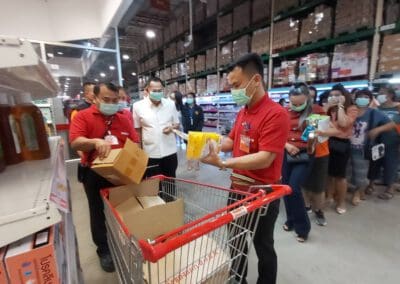 ส่วนเรื่องการแก้ไขปัญหาการขาดแคลนหน้ากากอนามัย ทางจังหวัดฯ ได้ประสานไปยังกลุ่ม OTOP และ อปท.ทั้ง 340 แห่ง ช่วยกันผลิตหน้ากากอนามัยแบบผ้าออกมาจำหน่าย โดยทางรัฐมนตรีว่ากระทรวงมหาดไทย ได้สั่งการให้เพิ่มกำลังการผลิตไปถึงระดับหมู่บ้าน ซึ่งจะทำให้รู้ความต้องการว่า แต่ละหมู่บ้านยังขาดแคลนหน้ากากอนามัยอยู่อีกจำนวนมากน้อยเพียงใด ก็จะทำให้กระจายสินค้าลงถึงประชาชนได้อย่างทั่วถึงและเพียงพอต่อความต้องการ จึงขอให้พี่น้องชาวโคราชอย่าได้ตื่นตระหนก เพราะทางรัฐบาล กระทรวงมหาดไทย และกระทรวงสาธารณสุข ได้ร่วมกันระดมความมือไปยังองค์กรปกครองส่วนท้องถิ่นทุกพื้นที่ทั่วประเทศ ช่วยกันผลิตหน้ากากอนามัยออกมา จำนวน 50 ล้านชิ้นในเร็วๆนี้ และให้กลุ่ม OTOP ,กลุ่มสตรี,จิตอาสา ช่วยกันผลิตอีกส่วนหนึ่ง ซึ่งขณะนี้ จังหวัดนครราชสีมา ได้ให้กลุ่มOTOPช่วยผลิตหน้ากากอนามัยออกมาแล้ว 53,000 ชิ้น นอกจากนี้ ในสัปดาห์หน้า จะมีรถโมบาย จำนวน 3 คันของกระทรวงพาณิชย์ นำหน้ากากอนามัย รวมวันละ 15,000 ชิ้น มากระจายจำหน่ายในราคาควบคุมให้กับพี่น้องประชาชนในจังหวัดนครราชสีมา และในวันที่ 13 มีนาคมที่จะถึง สำนักงานพาณิชย์จังหวัดฯ ได้ร่วมกับ ห้างสรรพสินค้าเดอะมอลล์โคราช คิ๊กออฟ ผลิตหน้ากากอนามัยเพิ่มอีก 32,000 ชิ้น ซึ่งคาดว่า ในเร็ววันนี้ จะมีสินค้าหน้ากากอนามัยเพียงพอต่อความต้องการและกระจายไปถึงของพี่น้องประชาชนทุกคนในพื้นที่อย่างแน่นอน.