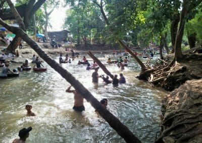 โคราชอากาศร้อนจัดทะลุ 40 องศา นักท่องเที่ยวและผู้ปกครองพาเด็กนักเรียนลงแช่น้ำคลายร้อนที่น้ำตกวังเณร ในช่วงปิดเทอม