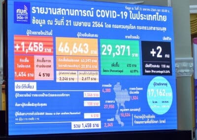 เมื่อเวลา 11.35 น. วันที่ 21 เมษายน 2564 ที่ทำเนียบรัฐบาล พญ.อภิสมัย ศรีรังสรรค์ ผู้ช่วยโฆษกศูนย์บริหารสถานการณ์การแพร่ระบาดของโรคติดเชื้อไวรัสโคโรนา 2019 (COVID-19) หรือ ศบค. รายงานตัวเลขของผู้ป่วยติดเชื้อไวรัสโคโรนา 2019 หรือ โรคโควิด-19 ของประเทศไทย ประจำวันนี้ (21 เม.ย. 64) ว่า มีผู้ติดเชื้อรายใหม่ 1,458 ราย แบ่งเป็นผู้ป่วยติดเชื้อภายในประเทศ 1,454 ราย (จากระบบเฝ้าระวังและระบบบริการฯ 1,346 ราย จากมาตรการตรวจค้นเชิงรุกในชุมชม 108 ราย) และผู้ที่เดินทางมาจากต่างประเทศอยู่ในสถานที่กักกันที่รัฐจัดให้ 4 ราย
