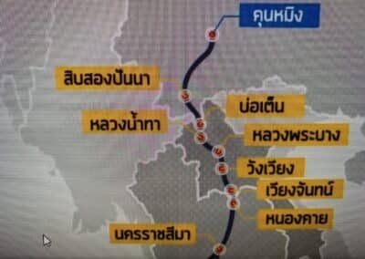 .. เส้นทางรถไฟจีน-ลาว ในโครงการระยะแรก วิ่งจากเวียงจันทน์ วังเวียง หลวงพระบาง สิบสองปันนา เข้าสู่คุนหมิง ระยะต่อไปคือ จากคุนหมิง สู่ต้าลี่ ลี่เจียง แชงกรีล่า ทิเบต คาดว่าจะเปิดให้บริการได้ในปีหน้า